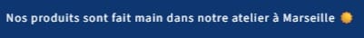L’entreprise y indique que son atelier est situé à Marseille et qu’il s’agit d’artisanat. Cette information constitue l’un des éléments de communication utilisés pour présenter l’origine de sa fabrication.